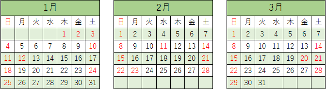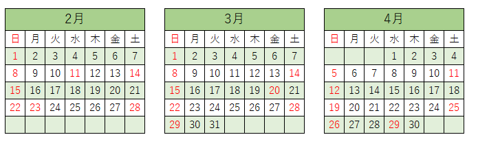 ※赤文字の曜日は休業日です。
